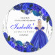Adesivo Redondo Quinceanera Clássica Real Azul e Prata Floral R