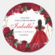 Adesivo Redondo Quinceanera Clássica, Vermelha e Dourada, Ronda St