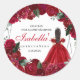 Adesivo Redondo Quinceanera Clássica Vermelha e Prateada Floral, S