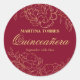 Projetado para sua Quinceañera ou doce 15 Celebração. Decorre seus envelopes, favores, guardas e embrulho de presente com esses adesivos Quinceanera elegantes. Um design moderno em vermelho escuro. Burgundy com arranjos florais em ouro opulente, para enquadrar seu texto personalizado. O texto diz "[quince name] Quinceañera [date]" em caligrafia limpa mas decorativa e em serifa clássica. O modelo está configurado para que você edite (ou exclua) qualquer ou todos os textos do exemplo. Por favor, navegue na nossa loja para coordenar itens para a sua Festa de aniversário de Quinceanera.