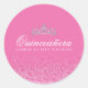 Tampas de Quinceanera, cor-de-rosa. Possui brilho rosa brilhante, texto personalizado e uma coroa de diamante impressionante. Adicione um toque especial personalizado aos seus envelopes, presentes, favoritos para festas e muito mais com estes bonitos adesivos quinceanera.