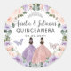 Adesivo Redondo Quinceañera XV Doce 16 Gêmeas Florais Lilac Blush
