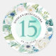 Adicione um detalhe elegante aos seus envelopes e lembrancinhas com nosso adesivo floral aqua, turquesa e branco. Disponível em dois tamanhos diferentes. Exuberante coroa floral em tons de aqua, turquesa, azul-teal, menta verde, branco e verde-limão. Centro com fundo de aquarela em aqua e azul-teal e número 15 em azul-teal (que pode ser alterado para outros números de aniversário usando a caixa de texto fornecida). Área para duas linhas de texto disponível para que você possa personalizar com seu nome, evento e data. Convite e produtos para eventos coordenados disponíveis. Parte de nossa "Coleção Floral Azul, Aqua, Turquesa e Verde" com uma variedade de produtos coordenados disponíveis.