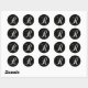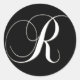 R monograma com fundo preto, script branco inicial e borda prateada. Um adesivo perfeito para os envelopes de casamento, sacos de presentes ou outra decoração para o seu casamento elegante.
