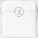 R Monograma Faux Silver Envelope Ou Favor Seal. Estes adesivos redondos clássicos são impressos com tinta não metálica em um adesivo plano para se parecer com prata. Não são monogramas biselados ou gravados, mas são concebidos para parecerem monogramas biselados ou gravados. Estas focas de monograma prateado são impressas em um fundo branco, a menos que você selecione um fundo colorido diferente antes de passar à verificação. Além de serem bonito artigos de papelaria de casamento, estes elegantes selos de envelope de convite de casamento também fazem selos de cartão de Natal personalizados com monogramas de excelente, adesivos personalizados de selo de cartão de cartões de natal e adesivos personalizados de selo de cartão de Natal.