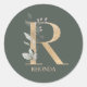Florial da letra R monograma. A letra R, de textura castanha ouro, acentuada com folhas compostas de cor aquosa verde, flores e pó de ouro. Personalizado com o nome na fonte correspondente.