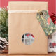 Gato Ragdoll vestindo um chapéu de Natal na janela com neve.