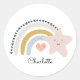Um adorável e moderno vassoura do arco-íris, a aquarela, personalizou o adesivo de bebê com pequena estrela e coração cor-de-rosa. Encontre qualquer uso criativo para este adesivo de nome, do chá de fraldas aos itens da menina. Livros adesivos, computadores, cadernos, envelopes, presentes e muito mais!