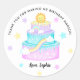 Este obrigado do bolo arco-íris que você cola apresenta uma mão desenhada três bolo hierárquico com um sol fofo no topo e arco-íris na frente com gelo e borrifadas. Personalize a mensagem para dizer o que você gostaria de fazer aos seus convidados. Veja toda a coleção correspondente.