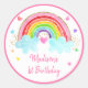Adesivo Redondo Rainbow Cloud Hearts Pink Dourado Birthday