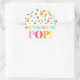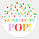 Chá de fraldas que ela esteja pronta para pop a favor de etiqueta adesiva com o padrão de confete arco-íris, perfeito para favores de pipoca.