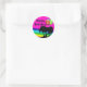 Um brilhante, ousado e belo adesivo de aniversário com tema de unicórnio, com um unicórnio místico negro, balões e fundo arco-íris. O adesivo perfeito para seu amante de unicórnio!