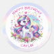 Adesivo Redondo Rainbow Unicorn Girl's Birthday Party Personalized