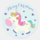 Adesivo Redondo Rainbow Unicorn Natal Glitter Aqua