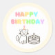 É o adesivo Arco-Íris Amarelo Clássico Arredondado de Aniversário. Um gato de chapéu e um bolo são tão fofos. O texto colorido do arco-íris e o amarelo branco e mole estão harmonizados. É um presente significativo para o seu amado. (amigo/família/namorada..) Que tal enviar seu amor para suas pessoas preciosos? :)