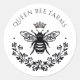 Abelhas tema mel comercial, etiqueta do produto design. Abelha rainha elegante e coroa em formato de círculo de coroa de louros. Um belo estilo rústico de terra com tipografia elegante. Um tema de abelhas para um negócio apiário de produtos de mel, ou qualquer negócio que ressoe com o simbolismo das abelhas.