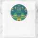 Eid Mubarak e Ramadã celebram o ouro árabe "Labbaik ya Rasool" caligrafia e padrão islâmico, mesquita colorida desenhada pela mão, lanternas islâmicas em fundo azul. Você pode usar este adesivo para comemorações do Ramadão, Eid al fitr e Eid al adha e muito mais. Você pode mudar facilmente esta cor de fundo e pode alterar o texto ou removê-lo clicando nas ferramentas de personalização do Zazzle.