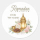 Celebrate the spirit of Ramadan with this elegant round sticker featuring a golden lantern, soft floral details, and a warm Ramadan Kareem greeting.