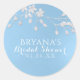 Adesivos de Favor de Festa de Chá de Noiva Azul com Ramo Floral Branco. Personalize com qualquer texto que desejar.