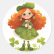 Adesivo Redondo Rapariga de Cabelo Vermelho em Verde