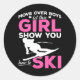 Adesivo Redondo Rapariga De Esqui Se Mover Sobre Meninos Deixe Ess