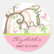 Adesivo Redondo Raparigas Gêmeas Ervilhas Rosa Num Chá de fraldas