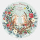 Uma bela coroa de inverno com flores vermelhas, folhagem e bagas e duas raposas no centro. Edite ou exclua o texto conforme necessário.