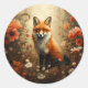 Adesivo Redondo Raposa vermelha com flores silvestres.