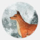 Adesivo Redondo Raposa Vermelha da Floresta de Montanha Snowy Wood