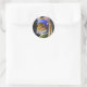 "Mouse com um olhar de pérolas" Watercolor Art Round Sticker do artista Jean Weiner "Mouse com um olhar de pérolas" é uma paródia na famosa pintura de retrato de Girl with A Pearl Earring de Johannes Vermeer. Este pequeno rato marrom-branco está vestido e posando para o seu retrato. Suas orelhas de rato estão espiando através do seu revestimento de cabeça e cachecol. Para ser um rato da Era do Ouro Holandês! Este design luminoso encantado encantará com certeza qualquer entusiasta ou coletor do mouse!