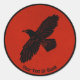 Uma simples silhueta preta de um Raven (Corvus corax) sobre fundo vermelho. A imagem raspada recebeu um ligeiro efeito "áspero" ou "vestido". Adicione seu próprio texto.