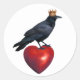 Um corvo negro vestindo uma coroa ouro percorre um grande coração vermelho nesses adesivos de amor para Dia de os namorados ou aniversário.