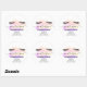Um adesivo para promoção da reabertura do seu salão de beleza, negócio, ou para um artista de maquiagem após o 19 de Covid, o vírus da corona. Um fundo branco com pinceladas pintadas, de cor pastel leve, em ouro rosa, roxo, amarelo, falso. Decorado com lascas oculares pretas. À frente: O texto: Estamos abertos. Personalize e adicione seu nome, endereço e informações de contato.