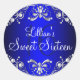 Adesivo Redondo Real Blue Silver Pearl Damask Sweet 16 Sticker