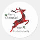Uma rena de xadrez vermelha e preta impressionante está saltando para o ar neste lindo adesivo. É perfeito para etiquetas de presentes, bolsas de Natal e muito mais. Diz Feliz Natal e há um lugar para você personalizar com seu nome. Basta clicar em "personalizar este modelo"