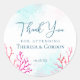 Obrigado de recife de coral costeiro. Vibrante e ousado, este adesivo é excelente para casamentos de praia, destino ou casamentos de praia. Criado com coral rosa, roxo e azul com sotaque simples. Personalize este design com as informações de casamento e qualquer outra mensagem personalizada que você gostaria de incluir!