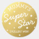 Autocolante de estrelas de ouro com o nome da pessoa, ou seja, múmia ou pai, as palavras "super estrela, excelente trabalho" e uma dispersão de estrelas.