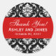 Adesivo Redondo Red, Black Wedk Damask Obrigado Rótulo