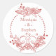 Adesivo Redondo Red Burgundy LoveBirds Floral Personalizado Name