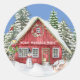 Adesivo Redondo Red Country House Snow Christmas Scenname