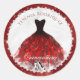 Este belo adesivo vermelho de Quinceañera apresenta um vestido brilhante em vermelho e preto com saltos reluzentes e borda de diamante em uma seda e fundo vermelho cintilante. Perfeito para selar envelopes, tratar bolsas ou raspagem. Escrita elegante em vermelho e branco. É fácil personalizar com opções personalizadas.