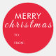 "Feliz Natal" personalizado de e para o Classic Round Sticker - Vermelho.