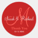 Vinhetas iniciais com noiva e nome noivo, data de casamento e obrigado mensagem para expressar sua gratidão no dia do seu casamento ou em qualquer ocasião especial. Este adesivo de casamento monograma está em cor vermelha. Mais cores estão disponíveis para sua escolha. Você também pode personalizar a cor e a fonte usando o botão personalizar o recurso abaixo do produto