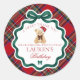 Adesivo Redondo Red Tartan Plaid Christmas Bear Birthday Favor