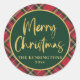 Adesivo Redondo Red Tartan Xadrez Dourada Script Feliz Natal