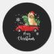 Adesivo Redondo Red Truck Merry Christmas Tree Golden Retriever Ch
