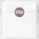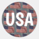 Este adesivo redondo apresenta o sinalizador vermelho, branco e azul dos EUA em um fundo de felpudo com um padrão em camadas. A palavra "EUA" aparece em letras grandes e brancas no topo. É bom para uso diário, ocasiões especiais, assim como Dia da Independência, 4 de julho, celebrações patrióticas. Você pode personalizá-lo se quiser. Torne as embalagens mais claras e muito mais com este adesivo!