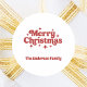 Um fundo branco, texto vermelho. Feliz Natal é escrito com uma fonte retrô do estilo 70. Personalize e adicione um ano e seu nome de família.