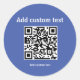 Adesivo de código Qr personalizado para clientes, url, promoção de site. Promoção, marketing para seu site, ofertas comerciais, produtos da empresa, empacotamento, serviço comercial, página inicial. Design de minimalista de código qr simples azul.