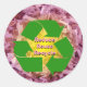 O contraste de cor destaca o texto. Promover uma mensagem "verde" neste adesivo de modelo redondo com um fundo de papel cor-de-rosa estilhaçado. O texto está centrado no símbolo do reciclar Loop Mobius. Mantenha esta mensagem ambiental ou preencha o bloco modelo com suas palavras. Ou clique em "Personalizar" para selecionar um estilo de fonte, tamanho e cor preferidos. O design inteiro é personalizável.